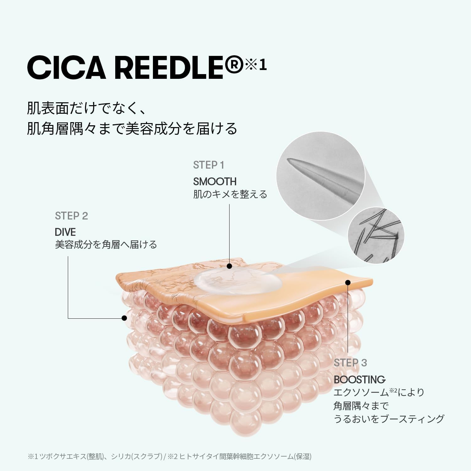 • CICA REEDLE® (Silica + Centella): Microagulhas naturais que ajudam na entrega dos ativos.