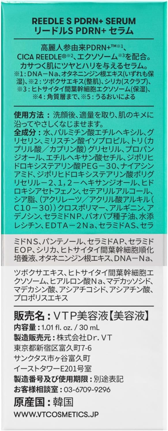 O Reedle S PDRN+ Serum da VT Cosmetics é um sérum de alto desempenho criado para revitalizar e fortalecer a pele danificada. Com uma combinação única de PDRN derivado de ginseng coreano, microagulhas CICA REEDLE e exossomos, este produto promove regeneração intensa da pele, melhora da textura e hidratação profunda.
